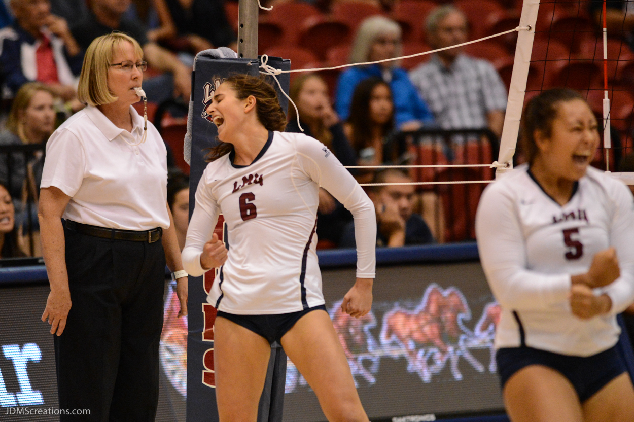 Sarah Sponcil Celebrates LMU volleyball vs. UCLA AUg. 27, 2016